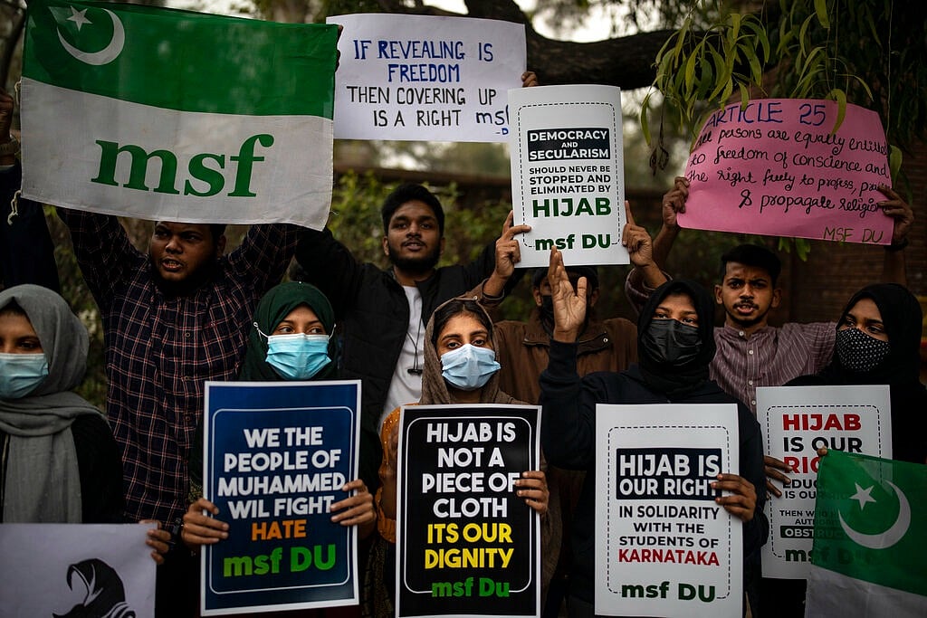 ஹிஜாப் அணிவதற்கு தடை விதித்ததை எதிர்த்து முஸ்லிம் மாணவிகள் நடத்திய போராட்டமும், 'அவர்கள் ஹிஜாப் அணிந்துவந்தால் நாங்கள் காவித்துண்டு அணிந்து வருவோம்' என இந்து மாணவ, மாணவிகள் எதிர் போராட்டம் நடத்தியதும், கர்நாடக மாநிலக் கல்லூரிகளை கலவர நிலவரத்தில் தள்ளியிருக்கின்றன. கொரோனா காரணமாக இரண்டு ஆண்டுகளாக கல்வி தடைப்பட்டிருந்தது. எல்லாம் சரியாகி பள்ளி, கல்லூரிகள் திறக்கப்பட்டு தேர்வு நடைபெற இருக்கும் நேரத்தில் இந்த சர்ச்சை எழுந்திருக்கிறது.