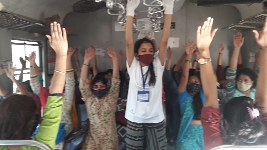 பொதுவாக மும்பையில் வேலைக்குச் செல்லும் பெண்களில் 90 சதவிகிதத்தினருக்கு மேல் புறநகர் ரயில்களைத்தான் பயணத்திற்குப் பயன்படுத்துகின்றனர். புறநகர்ப் பகுதியில் இருந்து மும்பைக்கு வர ஒரு மணிநேரத்திற்கும் அதிகமாக ஆகும். இந்த நேரத்தை பெண் பயணிகள் பயனுள்ள வகையில் பயன்படுத்த ஆரம்பித்துவிட்டனர். ரயிலில் ஏறி அமர்ந்துவிட்டால் உடனே போனை எடுத்துப் பார்க்க ஆரம்பிப்பவர்களை, யோகா பயிற்சியாளர் ருச்சிதா ஷா யோகா பக்கம் திருப்பி இருக்கிறார்.