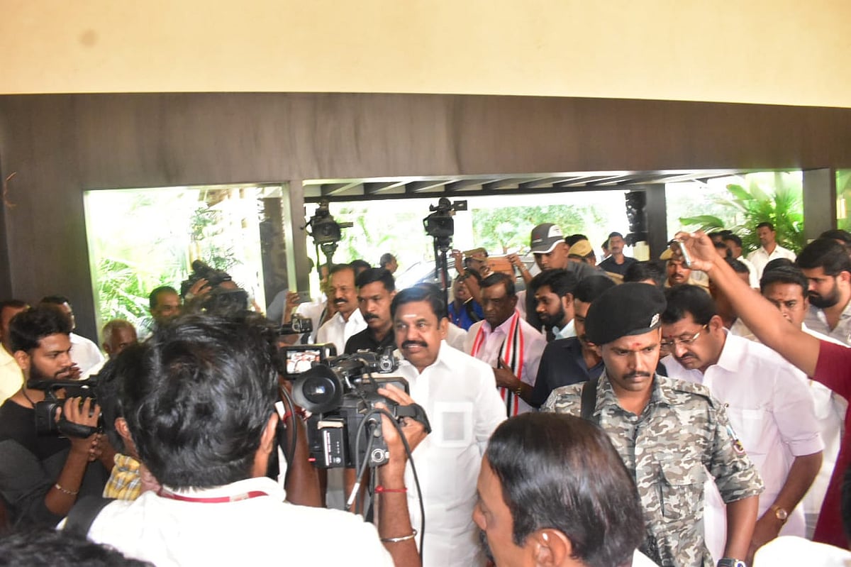 அதைத்தொடர்ந்து, மண்டபத்தை விட்டு வெளியே வந்த எடப்பாடி பழனிசாமி, ரிசார்ட்டில் இருந்து 200 அடி தூரத்தில் இருந்த பேக்கரிக்கு கட்சியினருடன் பேசிக்கொண்டே நடந்து சென்றார். அவருடன் செங்கோட்டையன், கே.வி.ராமலிங்கம், வேலுமணி, முன்னாள் துணை மேயர் கே.சி.பழனிசாமி உள்ளிட்ட அ.தி.மு.க முன்னாள் அமைச்சர்களும் நிர்வாகிகளும் சென்றனர்.