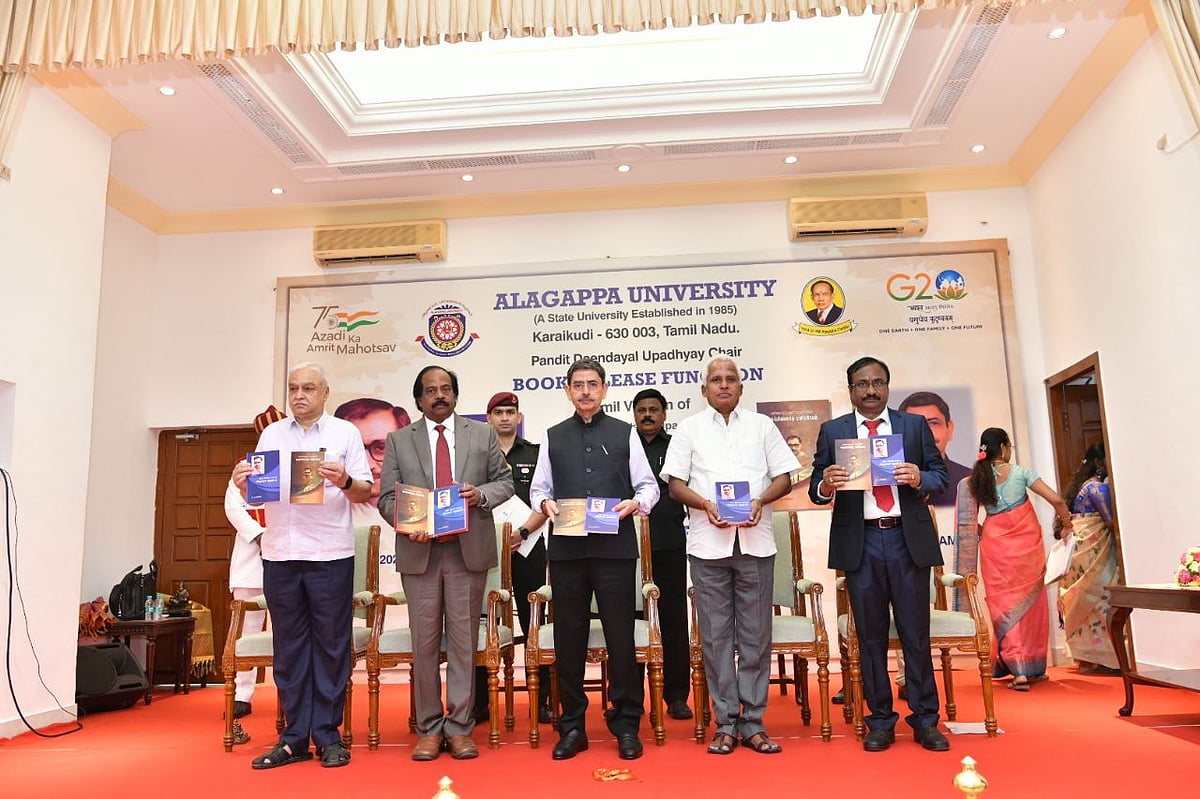 சென்னை ராஜ் பவனில் நேற்று (21.02.2023) பேராசிரியர் தர்மலிங்கத்தின் 'பண்டிட் தீன்தயாள் உபாத்யாயா சிந்தனைச் சிதறல்கள்' மற்றும் 'பண்டிட் தீன்தயாள் உபாத்யாயா ஒருங்கிணைந்த மனிதநேயம்' ஆகிய புத்தகங்களின் தமிழாக்க வெளியீட்டு விழா நடைபெற்றது. அதில், தமிழ்நாடு ஆளுநர் ஆர்.என். ரவி, தமிழ்நாடு மத்திய பல்கலைக்கழக துணைவேந்தர் எம்.கிருஷ்ணன் உள்ளிட்ட பலர் கலந்துக்கொண்டனர்.
