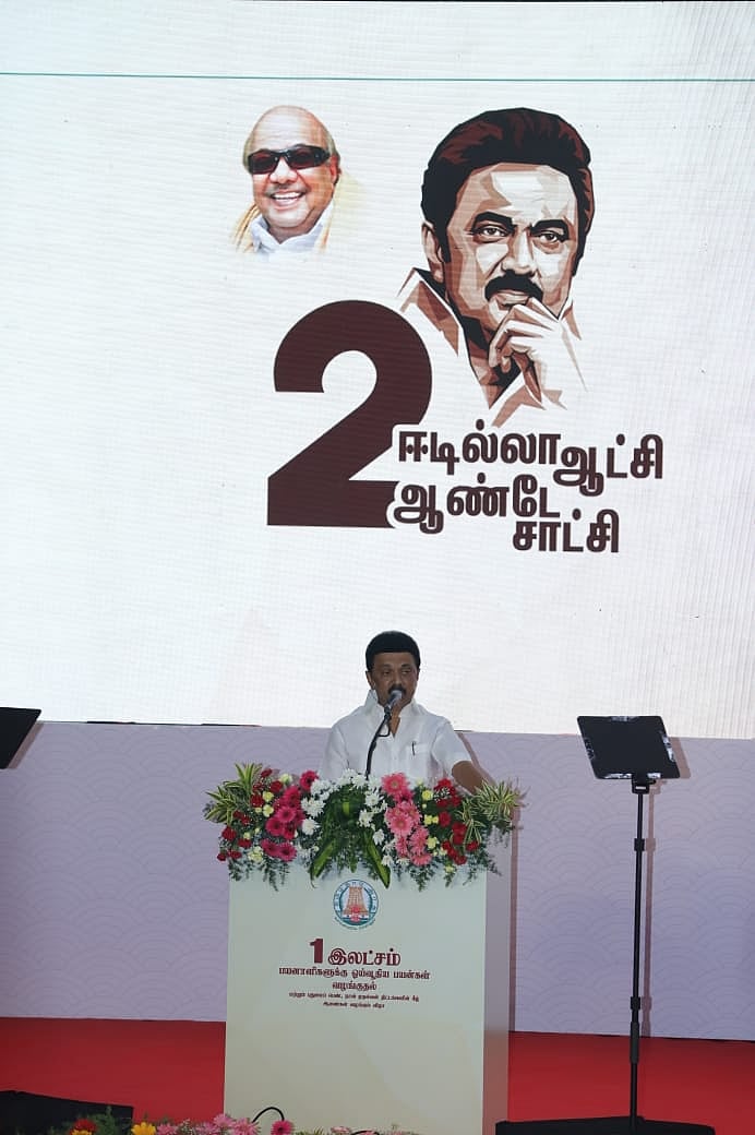 அதோடு நிற்கவில்லை. கோட்டையில் தீட்டுகிற திட்டங்கள் கடைக்கோடி மனிதருக்கும் சென்று சேர்வதை உறுதிப்படுத்த ‘கள ஆய்வில் முதலமைச்சர்’ என்ற திட்டத்தைத் தொடங்கி இதுவரை நான்கு கட்டங்களில், 16 மாவட்டங்களில் அரசு அதிகாரிகளுடன் ஆய்வு நடத்தியிருக்கிறேன். இப்படி இரண்டாண்டு சாதனைகளை முழுவதுமாக சொல்லி முடிக்க வேண்டுமென்றால், இன்னும் இரண்டு நாள்கள் நீங்கள் இங்கேயே தங்கியிருக்க வேண்டும்.