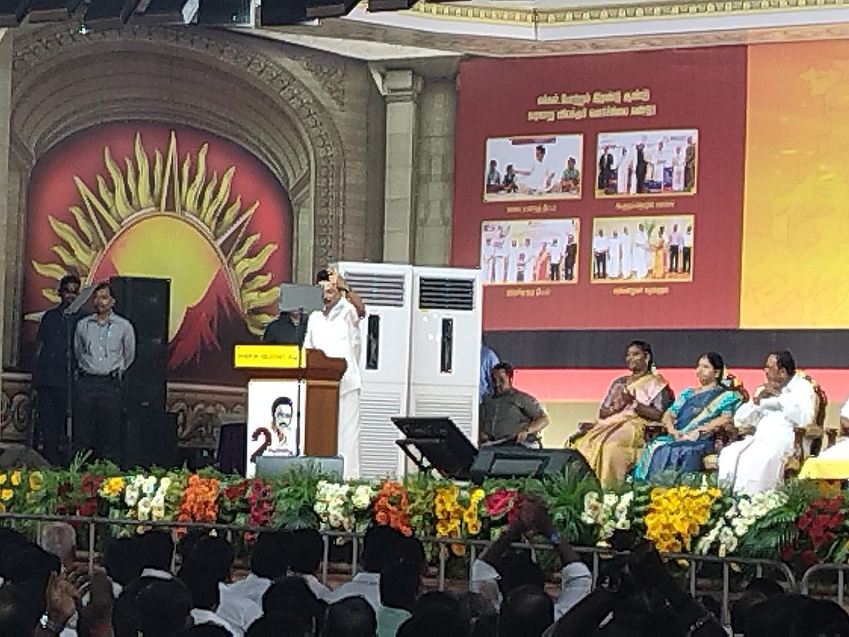 பொருளாதாரம் - கல்வி - சமூகம் – சிந்தனை - செயல்பாடு ஆகிய ஐந்தும் ஒரு சேர வளர வேண்டும். அதுதான் தந்தை பெரியாரும், பேரறிஞர் அண்ணாவும், முத்தமிழறிஞர் கலைஞரும் காணவிரும்பிய வளர்ச்சி. அதுதான் திராவிட மாடல் வளர்ச்சி. 'திராவிடம்' என்றால் காலாவதியான கொள்கை என்று சொல்லி இருக்கிறார் தமிழ்நாட்டின் ஆளுநர். அவருக்குச் சொல்வேன்... திராவிடம் என்பது காலாவதியான கொள்கை அல்ல. சனாதனத்தை காலாவதி ஆக்கியது திராவிடம். வர்ணாசிரமத்தை காலாவதி ஆக்கியது திராவிடம். மனுநீதியை காலாவதி ஆக்குவது திராவிடம். சாதியின் பேரால் இழிவு செய்வதை காலாவதி ஆக்குவது திராவிடம். பெண் என்பதால் புறக்கணிப்பதை காலாவதி ஆக்குவது திராவிடம். இன்னும் அழுத்தம் திருத்தமாகச் சொல்றேன்... ஆரியத்தை வீழ்த்தும் சக்தி திராவிடத்துக்கு மட்டும்தான் உண்டு. எத்தகைய அந்நியப் படையெடுப்புகளாக இருந்தாலும், ஆரியப் படையெடுப்புகளாக இருந்தாலும் - அதை வீழ்த்தும் ஆயுதம்தான் திராவிடம். அதனால்தான் ஆளுநர் அதைப் பார்த்து பயப்படுறார். ஆளுநர் அவர்களே… பயப்படத் தேவையில்லை.