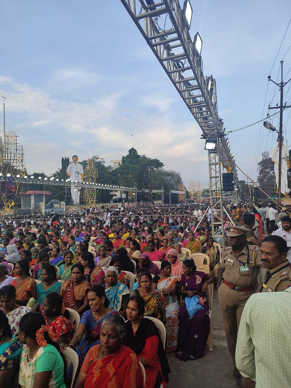 அ.தி.மு.க-வின் பத்து ஆண்டு காலத்தில் மொத்தமே 2 லட்சத்து 20 ஆயிரம் இலவச விவசாய மின் இணைப்புகள் மட்டும்தான் வழங்கப்பட்டன. ஆனால் நாம், நம்முடைய அரசு, நம்முடைய கழக அரசு ஆட்சிக்கு வந்ததற்கு பிறகு, இந்த இரண்டு ஆண்டு காலத்திலேயே 1 லட்சத்து 50 ஆயிரம் இணைப்புகளை நாம் வழங்கி இருக்கிறோம். அதுமட்டுமா, மகளிருக்கு இலவசப் பேருந்து, மாணவர்களுக்கு காலைச் சிற்றுண்டி, 234 தொகுதியிலும் உங்கள் தொகுதியில் முதலமைச்சர் திட்டம், நகர்ப்புரச் சாலைகள் மேம்பாட்டுத் திட்டம், இல்லம் தேடிக் கல்வி, மக்களைத் தேடி மருத்துவம், நான் முதல்வன், இன்னுயிர் காப்போம் - நம்மைக் காக்கும் 48, தமிழ்நாடு ஒலிம்பிக் தங்கப் பதக்கத் தேடல், சமத்துவபுரங்கள், உழவர் சந்தைகள், அரசு முன் மாதிரிப்பள்ளிகள், பேராசிரியர் அன்பழகனார் பள்ளிகள் மேம்பாட்டுத் திட்டம், பெருந்தலைவர் காமராசர் கல்லூரிகள் மேம்பாட்டுத் திட்டம், முதலீட்டாளர்களின் முதல் முகவரி தமிழ்நாடு, கலைஞர் நகர்ப்புற மேம்பாட்டுத் திட்டம், அன்னைத் தமிழில் அர்ச்சனை, அனைத்துச் சாதியினரும் அர்ச்சகர், கோவில் நிலங்கள் மீட்பு, 21 கலை அறிவியல் கல்லூரிகள், 12 புதிய ஐடிஐ நிறுவனங்கள், காவல் ஆணையம், சிறுகுறு புத்தாக்க நிறுவனங்கள், போதைப் பொருள் ஒழிப்பு, ஆன்லைன் ரம்மி ஒழிப்புச் சட்டம், புதுமைப்பெண், நீட் தேர்வு விலக்குச் சட்டம், ஆதிதிராவிடர் பழங்குடியினர் ஆணையம், இப்படி இன்னும் ஏராளமான சாதனைகளை நாம் நிறைவேற்றிக் கொண்டிருக்கிறோம். ஒரு சில திட்டங்களைத்தான் நான் சொல்லி இருக்கிறேன். துறைவாரியாகச் சொன்னால் நேரம் ஆகும்.
