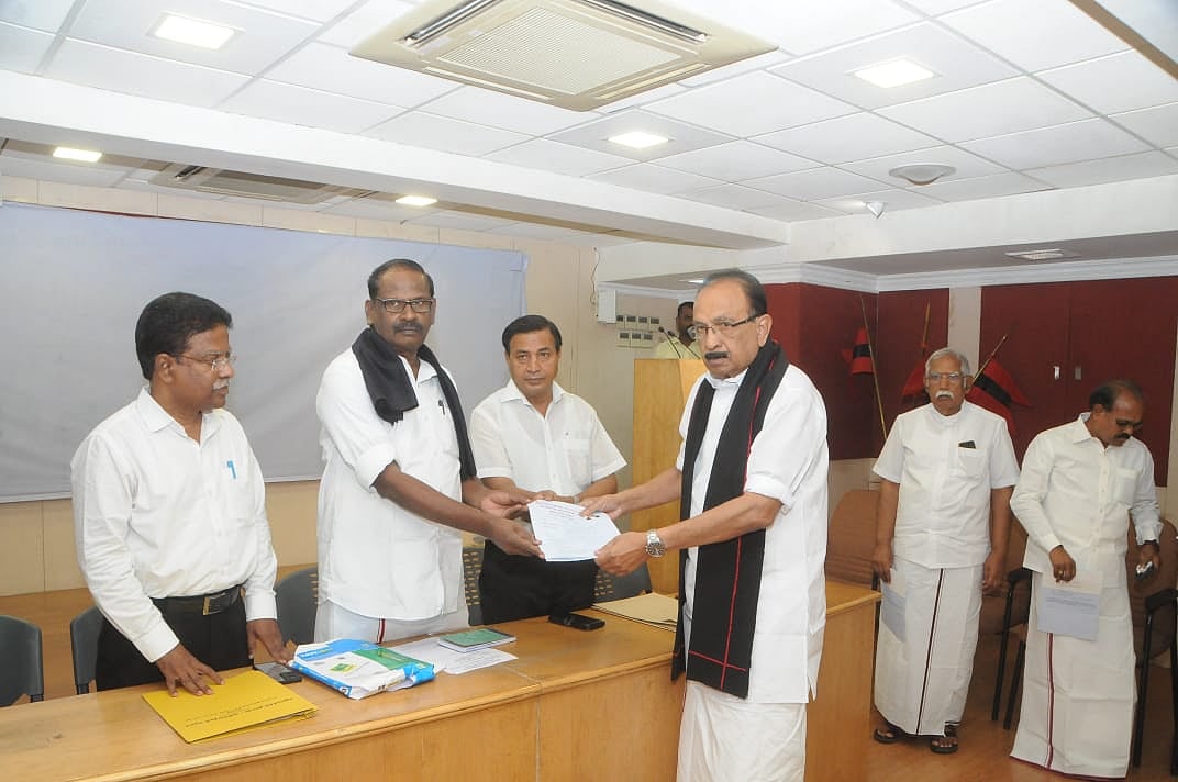 மறுமலர்ச்சி திராவிட முன்னேற்றக் கழகத்தின் ஐந்தாவது அமைப்புத் தேர்தல் 2022 மார்ச் மாதம் தொடங்கியது. ம.தி.மு.க-வின் 65 மாவட்ட அமைப்புகளுக்குக் கிளைக் கழகம் முதல் ஒன்றிய, நகர, பேரூர் கழகங்களின் நிர்வாக அமைப்புக்குத் தேர்தல் நடைபெற்றது. பின்னர் 61 மாவட்டக் கழகங்களுக்குத் தேர்தல் நடத்தப்பட்டு நிர்வாகிகள் தேர்ந்தெடுக்கப்பட்டனர். இந்தத் தேர்தல்கள் கடந்த மே மாத இறுதியுடன் முடிவடைந்த நிலையில், ஜூன் 1-ம் தேதி தலைமைக்கழக நிர்வாகிகள் தேர்தலுக்காக வேட்புமனுத் தாக்கல் சென்னை எழும்பூரிலுள்ள ம.தி.மு.க தலைமை அலுவலகத்தில் நடைபெற்றது.