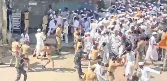 நேற்று புனே அருகில் உள்ள ஆலண்டி என்ற இடத்திற்கு வர்காரி யாத்திரை சென்ற போது அங்குள்ள ஷேத்ரா ஆலயத்தில் சென்று வழிபாடு நடத்தும் போது பக்தர்களுக்கும், போலீஸாருக்கும் வாக்குவாதம் ஏற்பட்டது. கோயில் வளாகத்திற்குள் 75 பக்தர்கள்தான் அனுமதிக்க முடியும் என்று போலீஸார் தெரிவித்தனர்.