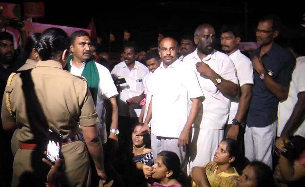 அண்ணாமலை வருவதற்கு முன்பாக அவருக்காக ஏற்பாடு செய்யப்பட்டிருந்த வாகனம் மற்றும் ஒலிபெருக்கிக்கு போலீஸார் அனுமதி வழங்க மறுத்ததாகவும், பாஜகவினரை போலீஸார் தரக்குறைவாக பேசியதாகவும் கூறி, கோவை ஈரோடு தேசிய நெடுஞ்சாலையில் சாலை மறியலில் ஈடுபட்டனர். இதனால் சிறிது நேரம் போக்குவரத்து பாதிக்கப்பட்டது. பேச்சுவார்த்தைக்குப் பின் பாஜகவினர் போராட்டத்தை கைவிட்டனர்.