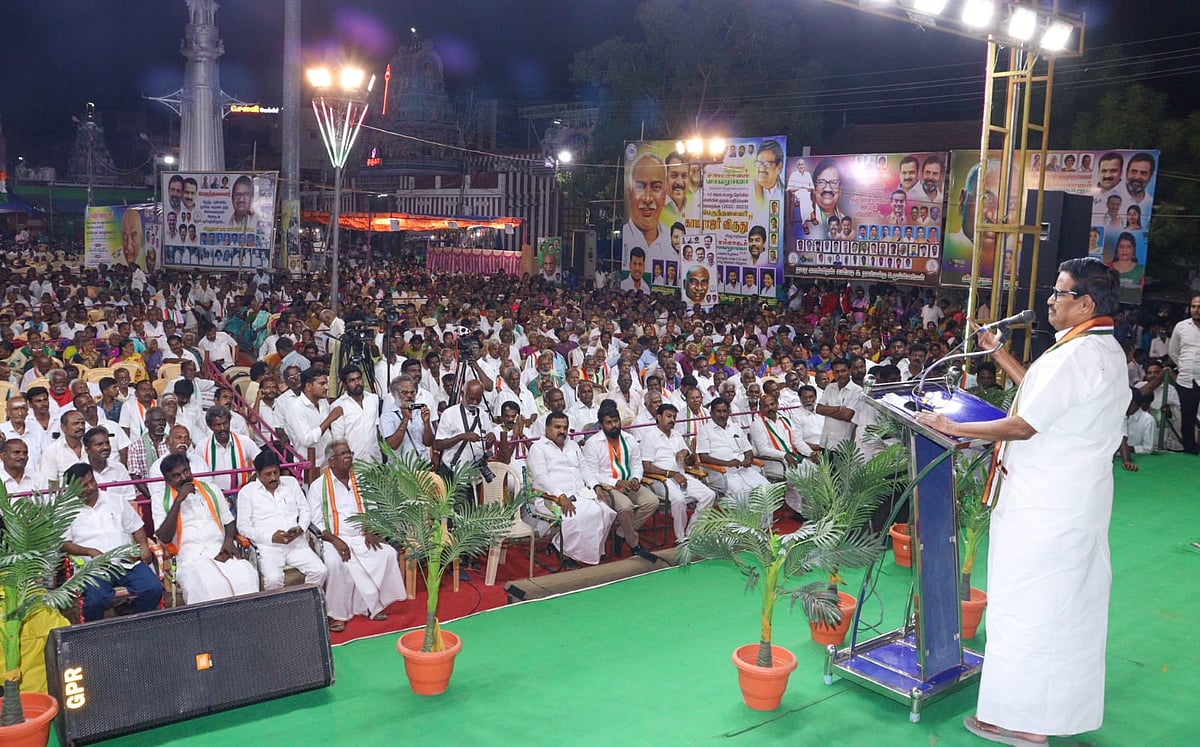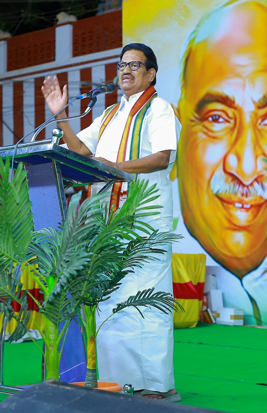 இட ஒதுக்கீட்டின் அடிப்படையில் முன்னுரிமை வழங்கவேண்டும் என்ற கோட்பாட்டை வகுத்தவரும் காமராஜர் தான். இதுவே நாடாளுமன்றத்தில் சட்டவடிவமாகி அரசியலமைப்பு சட்டமானது. ஆகவே, இட ஒதுக்கீட்டை முதன் முதலில் வழங்கியதும் காங்கிரஸ் கட்சிதான். இதை கட்சித் தொண்டர்கள் பரப்புரை செய்ய வேண்டும் என கேட்டுக்கொள்கிறேன். கூச்சலிடுவதும், புலம்புவதுமா அரசியல். இல்லை, மக்களுக்கு ஆக்கபூர்வமாய் செய்வதே அரசியல். அன்று ஆர்.எஸ்.எஸ்., ஜனசங்கம், இந்து மகா சபா என்ற பெயரில் இருந்தவர்கள்தான் இன்று பா.ஜ.க-வாக உள்ளனர். ஆனால் இந்தியாவில் மகாத்மா காந்தியைப்போல மதச்சார்பற்றவர்களை, மதச்சார்பற்ற கட்சிகளை இளந்தலைவர் ராகுல் காந்தி ஒன்று திரட்டுக்கிறார்.