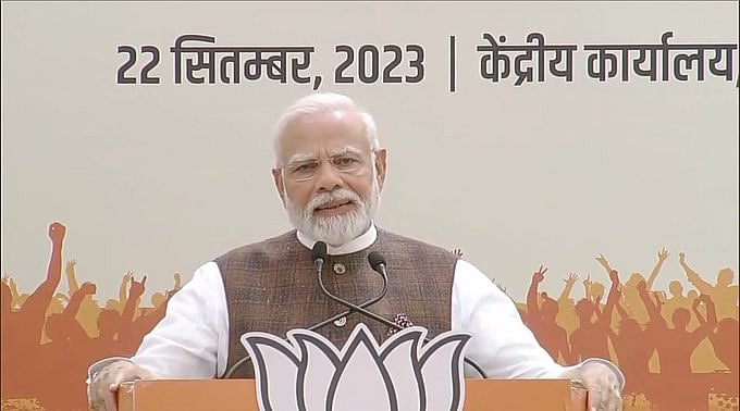 டெல்லியில் பா.ஜ.க தலைமை அலுவலகத்தில் பா.ஜ.க மகளிர் அணி சார்பில் பிரதமர் மோடிக்கு வரவேற்பு அளிக்கப்பட்டது. அதில், பிரதமர் மோடிக்கு மாலை அணிவித்து, பூக்கள் தூவி பெண் நிர்வாகிகள் வாழ்த்தும் நன்றியும் தெரிவித்தனர். கோவை தெற்கு தொகுதி எம்.எல்.ஏ-வும் பாஜக மகளிர் அணி தேசிய தலைவருமான வானதி சீனிவாசன் பூங்கொத்து கொடுத்து வாழ்த்து தெரிவித்தார். அப்போது பிரதமர் மோடி காலில் விழுந்து வானதி சீனிவாசன் ஆசிர்வாதம் பெற முயன்றார். உடனே ஒரு அடி பின்நகர்ந்த பிரதமர் மோடி, அதைத் தடுத்து, காலில் விழக்கூடாது என்பது போன்ற அறிவுரைக் கூறினார். பின்னர் மேடையில் மகளிர் அணி நிர்வாகிகள் சிலர் மோடி காலில் விழுந்த போது, மோடியும் பதிலுக்கு மகளிர் அணி நிர்வாகிகள் காலை தொட்டு வணங்கினார்.