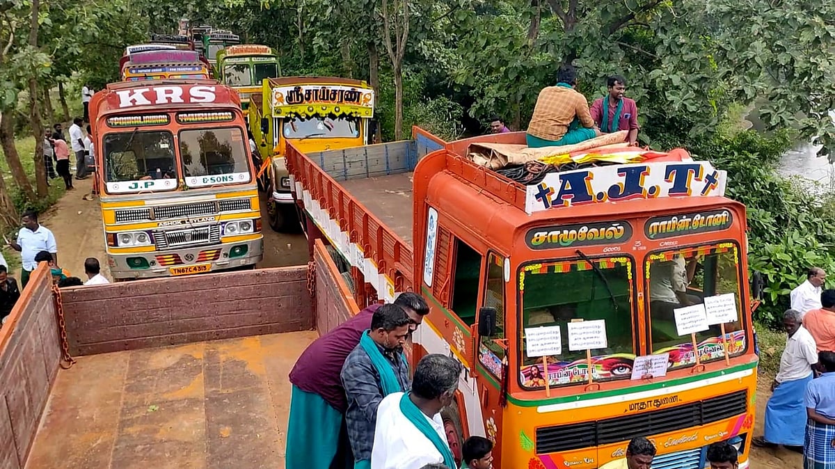 இது குறித்து லாரி உரிமையாளர்கள் தரப்பில் கூறியதாவது, `அரசு மணல் விற்பனை கிடங்கில், மணல் எடுப்பதற்கு ஆறு சக்கரம் உள்ள சிறிய லாரிகளுக்கு 2 யூனிட் மற்றும் 10 சக்கரம் உள்ள கனரக டாரஸ் லாரிகளுக்கு 3 யூனிட் மணல் எடுப்பதற்கும், உள்ளூர் தேவைகளுக்கு மாட்டு வண்டிகளிலம் மணல் எடுப்பதற்கும் அரசு ஆணை பிறப்பித்துள்ளது. ஆனால், இதுவரை டிராக்டர்களில் மணல் அள்ள அரசு ஆணை பிறப்பிக்கவில்லை.