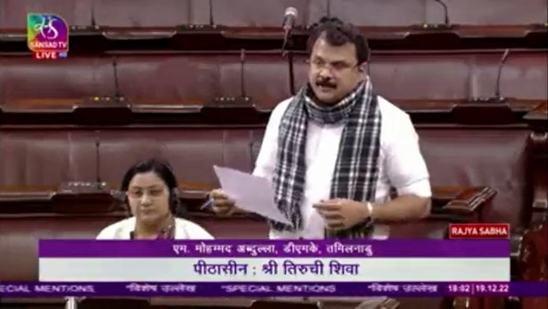 இதற்கு நடுவே குறுக்கிட்ட அமித் ஷா, "திருச்சி சிவா தி.மு.க சார்பில் பேசுகிறாரா அல்லது இந்தியா கூட்டணி சார்பில் பேசுகிறாரா?" எனக் கேள்வி எழுப்பினார். மேலும், எம்.பி திருச்சி சிவாவின் கருத்துக்கு பா.ஜ.க தரப்பில் கடும் எதிர்ப்புகள் தெரிவிக்கப்பட்டது. இதனால், அவையில் சிறிது நேரம் கூச்சல் குழப்பம் ஏற்பட்டது.